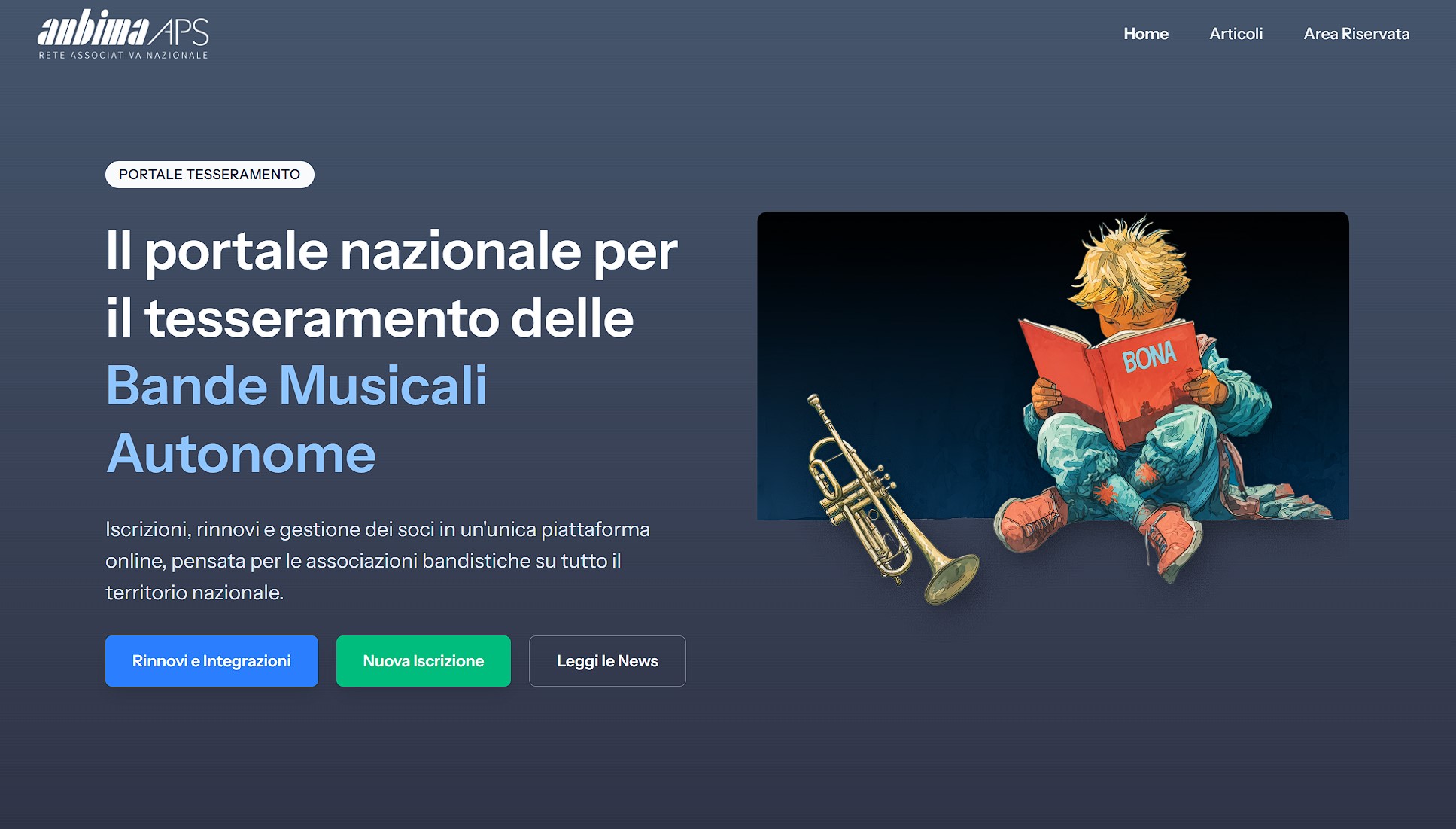 Tesseramento 2026 Si informa che, in considerazione dei lavori di adeguamento e rinnovamento del portale tesseramento, le iscrizioni per l'anno 2026 saranno possibili a partire da giovedì 8 gennaio! Buon anno a tutti! Articolo successivo: Auguri per le solennità del Natale del Presidente Nazionale ANBIMA APS Avanti